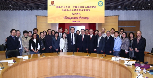 为进一步促进中国心理学研究的发展,推动心理学研究成果在中国社会转型与变革过程中发挥积极作用,12月3日,香港中文大学-中国科学院心理研究所生物社会心理学联合实验室成立典礼在香港中文大学行政楼祖尧堂举行。 中国科学院院长白春礼院士和香港中文大学校长沈祖尧院士在典礼上致辞,并为联合实验室揭牌。中国科学院出席典礼的还有港澳台事务办公室主任安建基,秘书处聂晓伟博士,心理所所长傅小兰研究员、副所长刘勋研究员、学术委员会主任李纾研究员,以及陈楚侨研究员和李娟研究员。香港中文大学出席典礼的还有副校长霍泰辉教授、社会科学院院长赵志裕教授、心理学系主任梁永亮教授以及心理学系的师生代表。联合实验室联席主任分别由刘勋研究员和梁永亮教授担任。 白春礼院长在致辞中表示,心理所在服务人口与健康领域国家重大需求、重大灾害心理援助等方面发挥了重要作用,希望借助联合实验室的成立,不断扩大和加强双方之间的学术往来与实质性合作,也希望中国科学院与香港中文大学能够在更多研究领域开展多方位的、更具针对性的实质性合作,提升合作水平、促进双方共同发展。香港中文大学沈祖尧校长在致辞中表示,香港中文大学非常重视与中国科学院的合作,也是在多所香港高校中与中科院合作规模最大、合作范围最广的合作单位之一。联合实验室的成立必将进一步推进香港中文大学和中国科学院之间的合作深度和广度。 在典礼上,梁永亮教授代表双方联席主任简要汇报了联合实验室的概况:目前合作领域主要集中于青少年精神健康、认知和情绪年老化以及中文阅读与理解。未来两年会有相应启动基金资助两地机构的团队管理、具体合作主题确定及合作研究讨论的旅费等。 香港中文大学心理学系成立于1982年,是该校社会科学院的重要成员,提供学士、硕士以及博士学位课程教学,在亚洲的心理学发展史上占据重要地位。香港中文大学心理学系与心理所的合作可以追溯到上世纪80年代,双方联合将明尼苏达多项人格测验中文版(第一和第二版)介绍到华人社会。在90年代,双方合作发展了跨文化个性量表(第一和第二版),填补了西方心理学遗漏了的个人建构。该人格量表已在西方国家被翻译成英语使用。2006年,双方建立了联合培养研究生项目。 联合实验室的成立,标志着心理所与香港中文大学在心理学科领域合作研究方面迈出了实质性的一步。联合实验室将在原有良好的合作基础上,发挥双方各自学科领域的优势,充分利用双方互补的科研条件以及相关资源和能力,在共同感兴趣的医学心理、认知心理学等领域开展深入合作研究,推动和加速相关领域的学科发展,培养心理学和认知神经科学研究型人才,搭建双方和多方的国际学术交流平台,促进相关学科的发展与进步,使长期积累的基础研究成果尽快得到应用及发挥应有的作用。 中科院院长白春礼与香港中文大学校长沈祖尧共同为联合实验室揭牌 出席联合实验室成立典礼人员合影 |