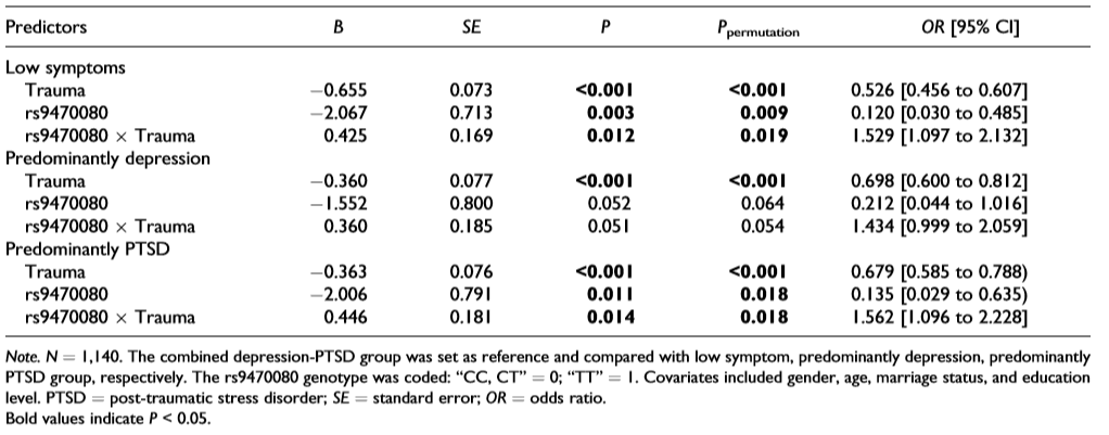 该研究首次发现了遗传学因素对创伤应激相关不同心理障碍症状共存模式的影响。研究结果支持了创伤暴露后心理症状异质性的遗传学基础,并提示研究者进一步关注在不同的PTSD-抑郁症状共存模式下糖皮质激素受体敏感性和HPA活动的变化情况。同时该结果也提示了FKBP5基因在PTSD和抑郁的共病中发挥了重要作用,为进一步的心理病理研究和临床干预提供了重要指导。 本研究受到国家自然科学基金项目(31271099,31471004)、教育部人文社会科学重点研究基地项目(16JJD190006),中国科学院对外合作项目(153111KYSB20160036)及北京市科学技术委员会(Z171100000117014)的支持,研究成果已在线发表于加拿大精神病学会(Canada Psychiatric Association)会刊The Canadian Journal of Psychiatry: https://journals.sagepub.com/doi/full/10.1177/0706743719870505 论文信息: Li, G., Wang, L*., Zhang, K., Cao, C., Cao, X., Fang, R., … Zhang, X. (2019). FKBP5 Genotype Linked to Combined PTSD-Depression Symptom in Chinese Earthquake Survivors. The Canadian Journal of Psychiatry, (in press). |