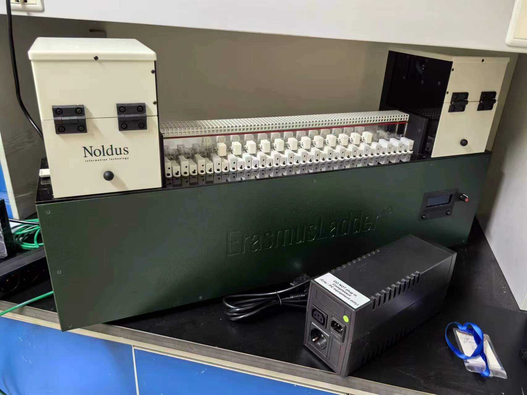 仪器名称:小鼠琴键运动行为分析系统-动物行为分析平台 仪器型号:Erasmusladder 生产厂家:诺达思 收费标准:按研究所文件执行 仪器简介:该设备包含工作站1台和琴键式跑道硬件1套及配套软件1套。小鼠步道两端均留有供小鼠进出的门,配有气流压缩风速控制装置,可提供 5-7 巴(Bar)压强气流,用于刺激小鼠通过琴键步道。步道由琴键组成,分上下两层,每层37个,放置在步道左右两侧。每一侧琴键高低交错。高灵敏感应琴键可以感应到超过4克以上的重量。步道内上层感应琴键上方设有 25 根默认隐藏的障碍琴键,可以通过软件控制其自动抬起和隐藏。可提供每只小鼠单次通过的跨步时间(Step time)和单次通过的跨步距离(Step size)以及每只小鼠的离开目标箱的潜伏期和时间点,包括计时阶段内灯光亮启后和气流开始后的时间点。 功能用途:研究啮齿动物的运动表现和运动学习能力 放置位置:北楼607