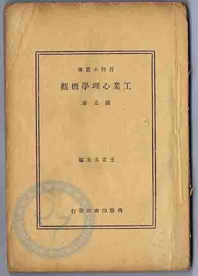 1935年,在中央研究院心理研究所工作期间,陈立在既无图书参考,也无助手帮助的情况下,埋头3个月撰写出《工业心理学概观》,这是中国第一部工业心理学专著,成为了我国的工业心理学乃至应用心理学理论发展的重要里程碑。在书的末尾,陈立充满信心地号召国人:“中国在第一次产业革命中是瞠乎后人极远,如今得迎头赶上。在这产业第二次革命(机械工业的人化)正是我们赶上人家的机会。……所以工业心理学所希望于国人者甚大。希望整个的产业界都加入这产业的大革命中以确立我国工业化的基础。”
