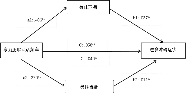 图1. 家庭肥胖谈话频率和中学生进食障碍症状之间的关系示意图