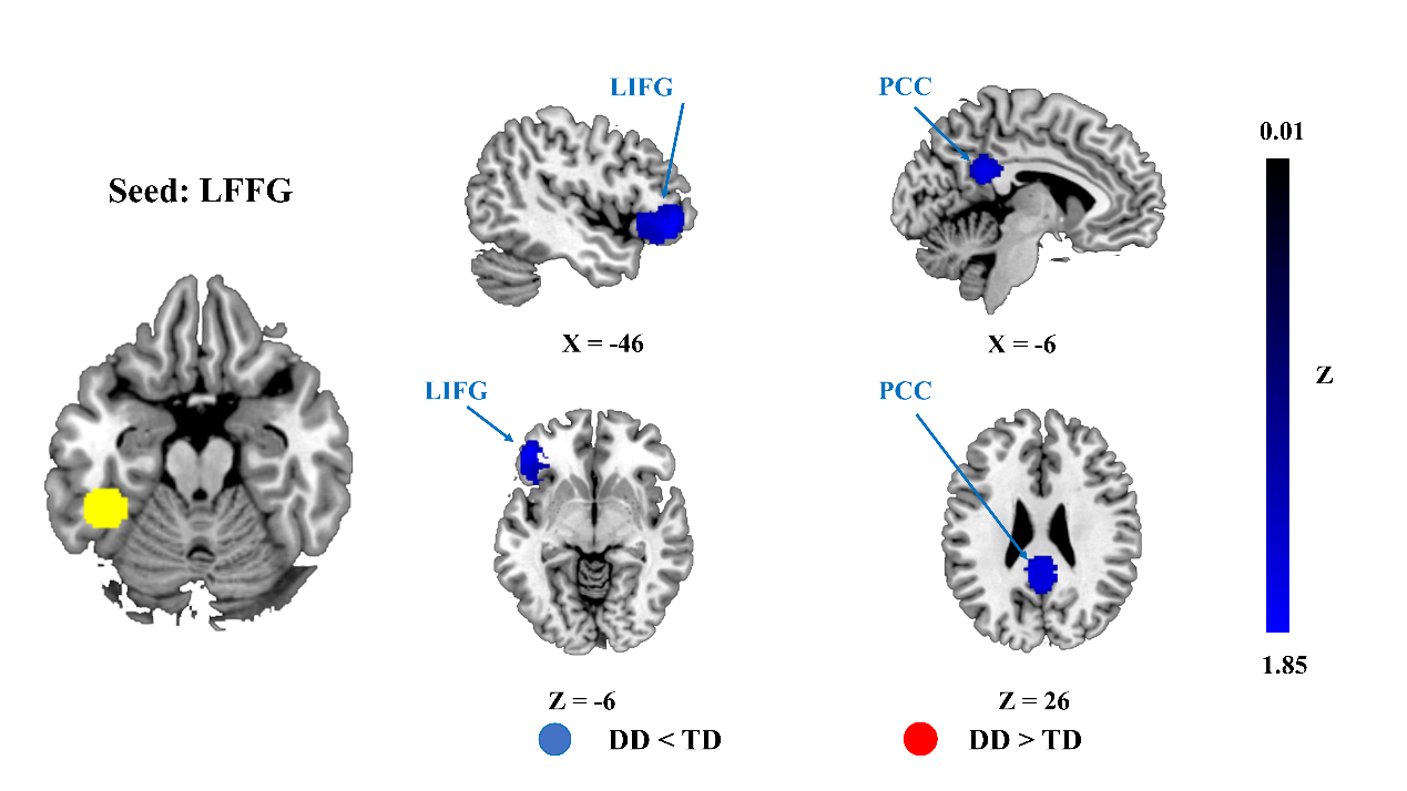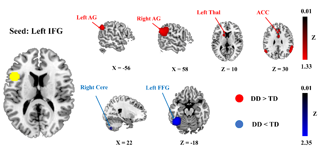 图1. 任务态fMRI下阅读障碍群体的异常功能连接