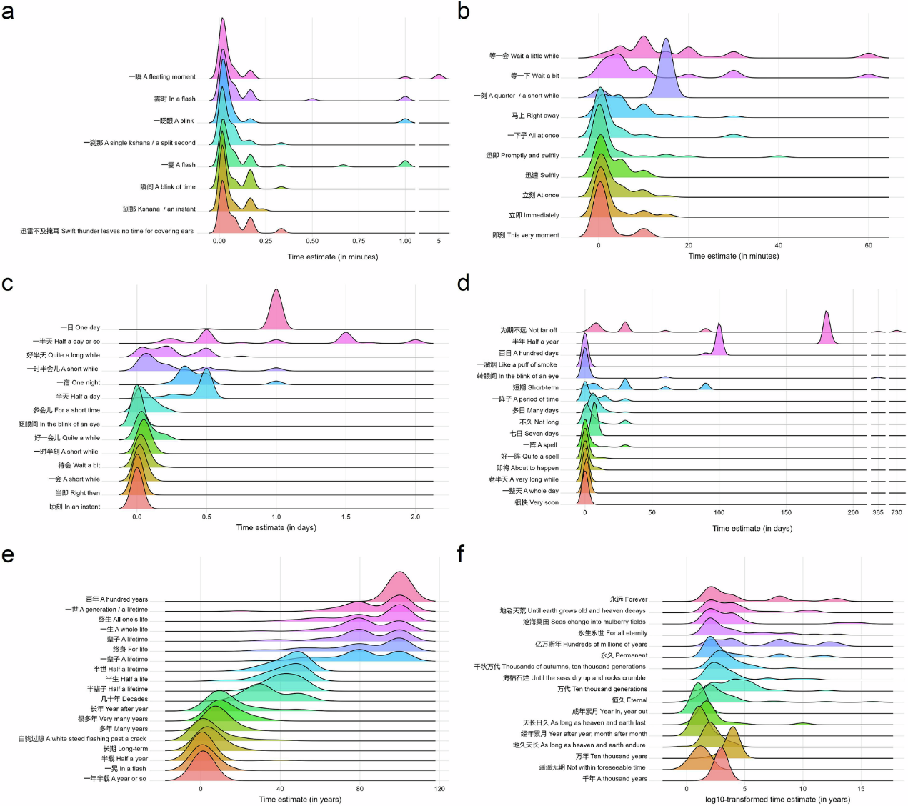 研究二构建了首个中文时间间隔表述开放数据库,涵盖2101个时间间隔表述,包括数字时间间隔词语(如“3天”“两小时”)与文字时间间隔词语(如“很快”“一阵子”)。每个时间间隔表述均配有相应的数字时间长度和词频信息(见图3)。
