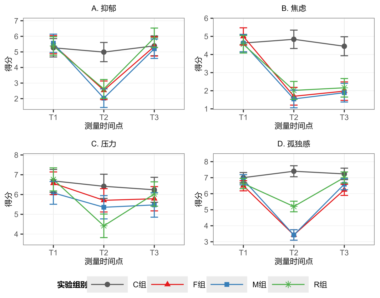 图3. 抑郁、焦虑、压力和孤独感的变化趋势