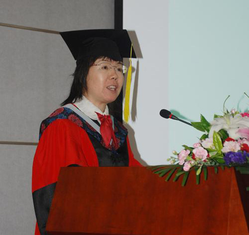 开场前一个小时,导师和毕业生就陆续进入会场。9点时会场中已经坐满了毕业生,过道上甚至还站满了来观摩毕业典礼的师弟师妹们。9点半时,毕业典礼在悠扬的欢迎进行曲中拉开了序幕。首先,由傅小兰所长致辞,她代表所里向今年顺利毕业的26名博士研究生和25名硕士研究生表示了衷心的祝贺。傅所长的讲话句句接地气,还使用了一些同学们耳熟能详的网络语言,将“不靠空谈靠实干”、“不拼爹娘拼心态”和“常回家看看”这三句话赠送给毕业生,表达了对毕业生的勉励和殷切期望。所长的讲话让同学们耳目一新,在笑声和掌声中,让即将走进社会的毕业生和师弟师妹们受益匪浅。接下来,张侃研究员作为导师代表发言。张老师首先用丘吉尔在牛津大学毕业典礼上的讲话“never,never,never…… give up”作为开场白,然后将他的致辞总结为7个字:“你们、我们和他们”,向研究生(你们)表示了感谢,并盼望毕业生进入工作岗位,成为心理学工作者(我们)以后,能真诚的对待人民(他们),并为提升国民素质而努力。优秀毕业生刘萍萍作为学生代表发言,向所内默默奉献的工作人员表示了由衷的感谢,向辛勤培育研究生的导师们表达了深深的敬意和谢意,分享了在心理所学习和生活的美好记忆,并表达了对未来生活的美好憧憬。之后,傅小兰所长、李安林书记和孙向红副所长为6位获得“所长奖”的研究生进行了颁奖。