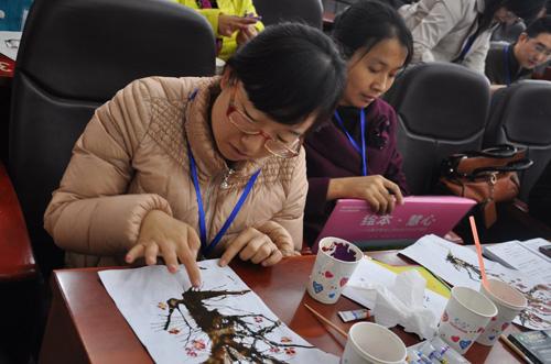 培训期间,共组织了“我的情绪色彩”、“努力生长的小种子”、“怒放的生命之花”、“过去、现在和未来”、“我的急救箱”、“我的动物园”、“我在校园里”、“我美丽的家乡”等八个主题培训内容。培训先以学员自己动笔体验,然后由培训导师分析,再由学员们分享总结的形式进行,运用了绘画、吹画、剪贴画等多种有趣新颖的方式进行体验,从艺术化心理治疗的角度来阐释儿童心理的危机干预。