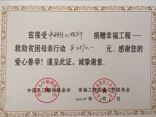 根据中国科学院人口和计划生育委员会办公室《关于转发<关于开展2014年“向实行计划生育的贫困母亲献爱心”捐款活动的通知>的通知》(科人口计生办字[2014]3号)文件精神,心理所组织开展了“回报母爱的奉献真情——救助计划生育贫困母亲”捐款活动。