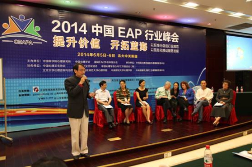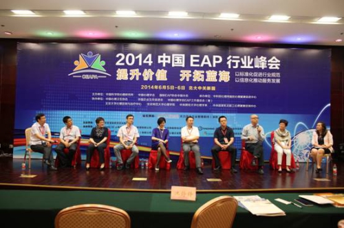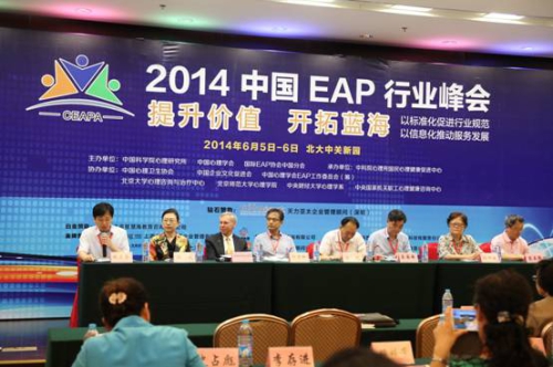 6月5至6日,2014年中国EAP行业峰会在北京大学中关新园隆重举行。本届峰会由心理所、中国心理学会、国际EAP协会中国分会主办,由中国心理卫生协会、中国企业文化促进会、北京大学、北京师范大学、中央财经大学、中国心理学会EAP工作委员会(筹)等机构协办。大会得到了社会各界的高度关注与支持,来自政府部门19个部委的代表,62家央企、国企、民企、外企的企业客户代表,42家科研院所的专家代表,81家EAP从业机构的专家代表总计近400人齐聚一堂,共同探讨中国EAP行业的本土化、标准化、市场化与信息化发展,为展示EAP领域最新成果,充分链接各方资源,促进供需有效互动,加强国际行业交流群策群力。