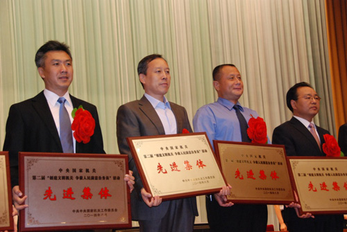 “创建文明机关争做人民满意公务员”活动是中央国家机关精神文明创建工作的重要载体。自该活动开展以来,心理所党政班子始终高度重视,在全所同志的大力支持和积极参与下认真组织文明创建工作,经过院文明办推荐、网上展示、网上投票、部委投票、工中央国家机关工委审议、网上公示等程序,被中央国家机关工委授予中央国家机关第二届“创建文明机关争做人民满意公务员”先进集体称号,心理所党委书记李安林作为中科院获奖代表上台领奖。