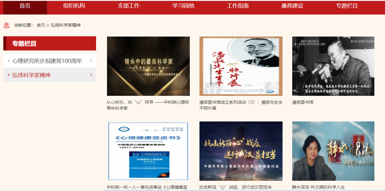 心理所网站“弘扬科学家精神主题专栏”