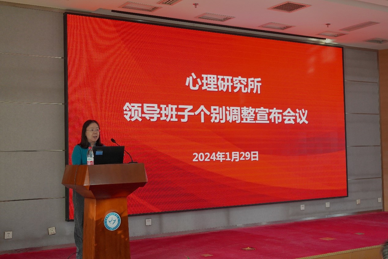 1月29日,中国科学院心理研究所召开领导班子个别调整宣布会议。中国科学院人事局副局长蔡宏志、领导干部二处副处长李熠熠出席会议。心理研究所领导班子成员、党委委员、纪委委员和科研管理骨干等50余人参加了会议。会议由蔡宏志主持。