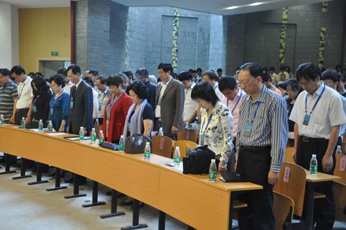 开幕式现场,与会人员集体向遇难同胞默哀