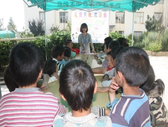 8月7日,心理所与世界宣明会在鲁甸县火德红中学临时帐篷安置点合作建立第一个“儿童天地”并正式投入使用,当日共吸引了近100人次参与。