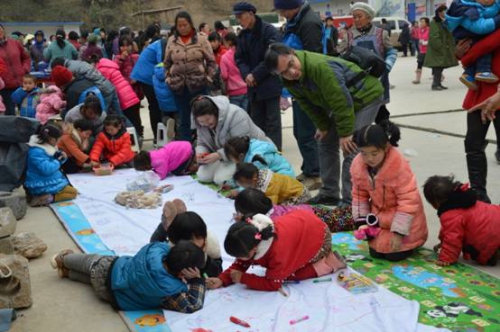 为了让灾区群众以积极、乐观的心态迎接新年到来,1月1日,鲁甸工作站在重灾区龙头山镇灰街子安置点临时党支部的支持下,在龙头山镇灰街子安置点开展了以“祝福鲁甸-2015”为主题的游园会活动。结合灾区当地文化和工作站心理援助工作特点,游园会安排了新年拍新照、集体绘画创作、心理学科普互动游戏、心理学知识科普问答等环节。“新年拍新照”活动可以使受灾群众觉察到身边的社会支持系统以及家庭支持系统;“集体绘画创作”活动可以使绘画者描绘新年愿景并对其情绪进行正向引导。通过这些活动,参与游园会的受灾群众直观地体验到了心理状态对人们生活的影响,也学会了一些调节情绪的小技巧。
