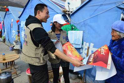 同时,工作站志愿者还陆续在灰街子安置点各个社区开展“家家户户拜新年”的活动,给每个帐篷送去年历和“福”字的同时也送去新春的祝福。此次拜早年活动覆盖灰街子安置点近600户居民,让整个社区的居民感受到心理援助团队的关心和来自社会各界的关注。