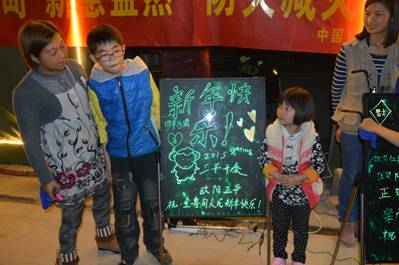 春节不仅是中国的传统节日,同时也是一个阖家团圆的日子。这个特殊的日子是中国人情感得以释放、心理诉求得以满足的重要载体,也是在受灾地区利用各种团体活动开展心理援助工作的重要契机。2月15至18日,由心理所心理援助鲁甸工作站、世界宣明会共同举办的“暖春鲁甸防灾减灾”春节活动在鲁甸县龙头山镇灰街子安置点开展。结合当地春季干燥风大的实际情况,工作站开展了“社区安全建设”、“家家户户拜新年”、“防灾减灾”“看春晚”等系列活动。
