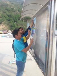 工作站志愿者张贴防灾减灾科普知识宣传海报