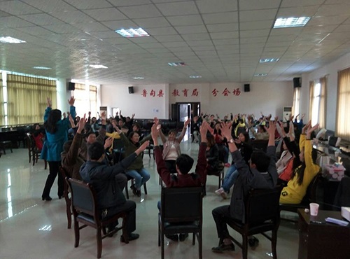 白云阁副站长正进行教师心理健康与心理保健实践操作讲解