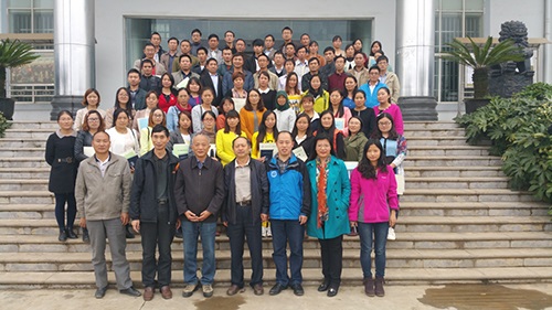 市、县教育局领导、鲁甸工作站志愿者及部分参训教师合影