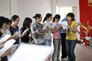 来自加拿大、香港和北京的华人志愿者们将7种颜色的画布分别交给北川中学高三年级不同班级的同学,让他们将个人的经历、情感和梦想都记录在这象征七色彩虹的画布上。同学们表达最多的愿望是:我想上大学!让所有我爱的人和爱我的人都平安、健康、快乐!